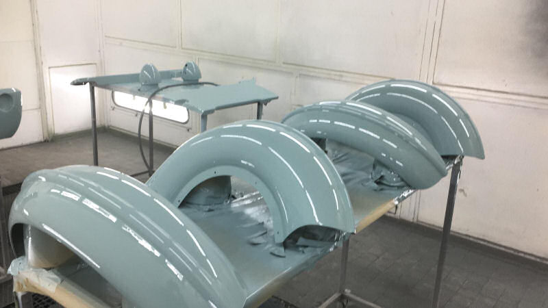 Finally, the exhaust is finished, the basket is done and we started with the window covers.